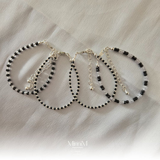 Double Layer Black Spinel And 925 Sterling Sterling Nazariya Bracelet