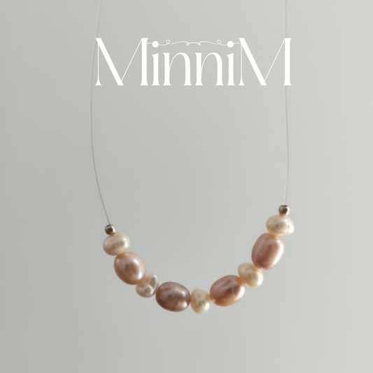 Freshwater Pink and White Pearl and 925 Sterling Silver FLOATING Necklace