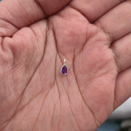 Purple Zircon Drop Charm in 925 Sterling Silver